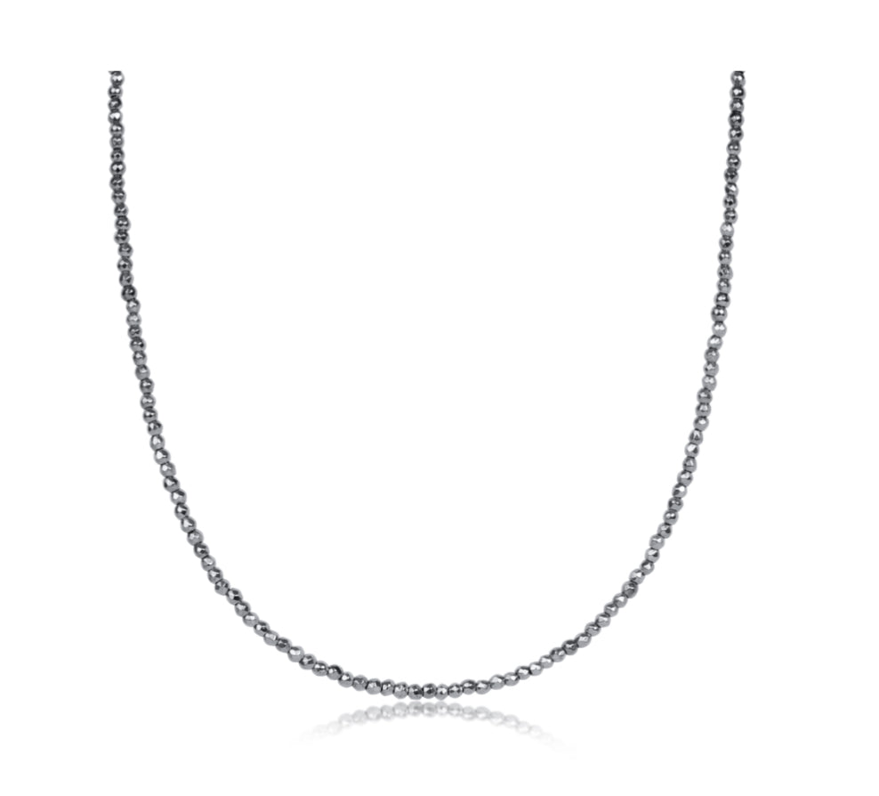 17" Choker Silver Faceted Hematite 2mm Bead
