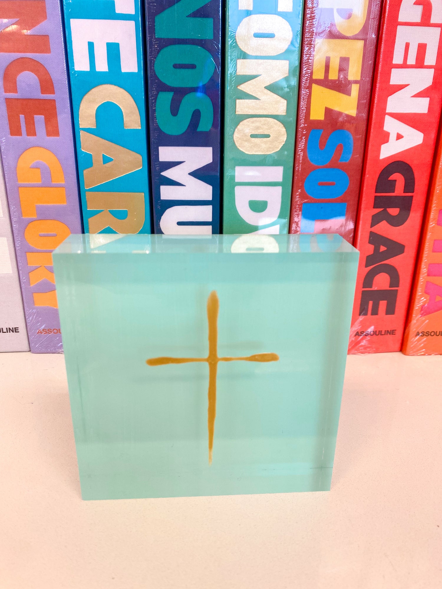 4x4 paint acrylic block with cross. These are the perfect addition to style your shelves, counters, nursery, etc!