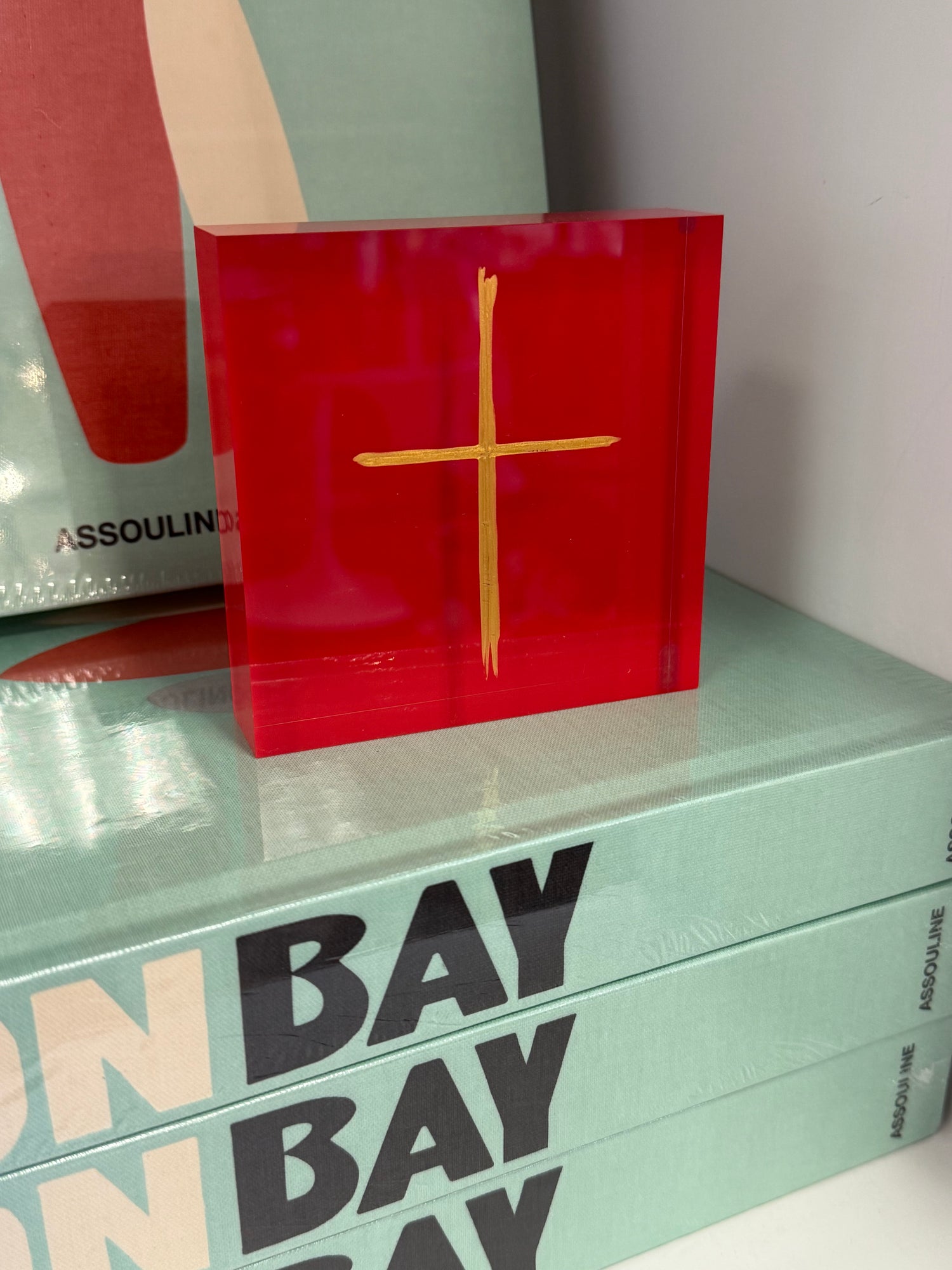 4x4 paint acrylic block with cross. These are the perfect addition to style your shelves, counters, nursery, etc!