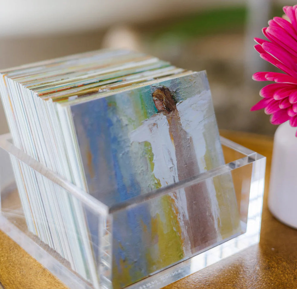 100 Days of Scripture features 100 4 x 4-inch scripture cards nestled in a versatile lucite boxfor displaying your cards either flat or vertically. Each card includes an Angel image on one side and a scripture verse on the other.