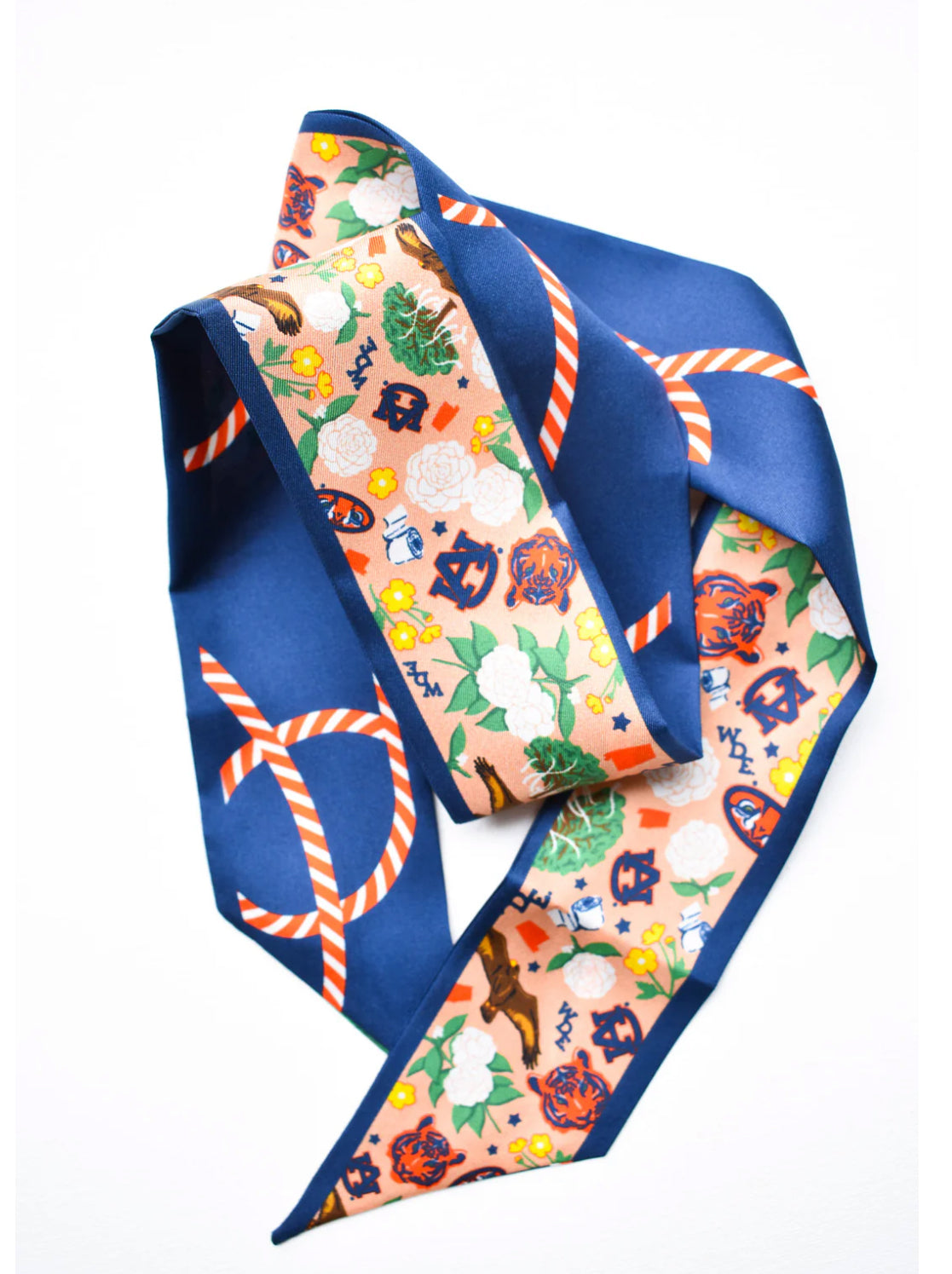 Double-sided: our War Eagle floral print paired with our orange stripe twist print