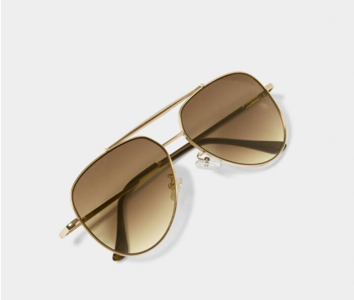 Our Bali Sunglasses in Gold Metal feature luxurious gold-tone details, a timeless aviator frame and a solid brown lense, ensuring they stand out from the crowd.