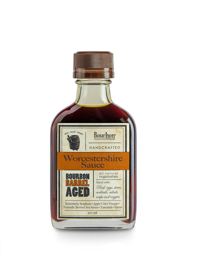 Bourbon Barrel Aged Worcestershire Sauce is a unique take on the traditional all-purpose sauce. Bourbon Barrel Aged Worcestershire is sweetened with sorghum, blended with pure Kentucky limestone spring water, and mellowed in bourbon barrels that were used to age some of the Bluegrass State’s finest Bourbons. It is all-natural and vegetarian, as it does not contain anchovies. Try our Worcestershire Sauce on eggs, in a Bloody Mary and especially in a burger!