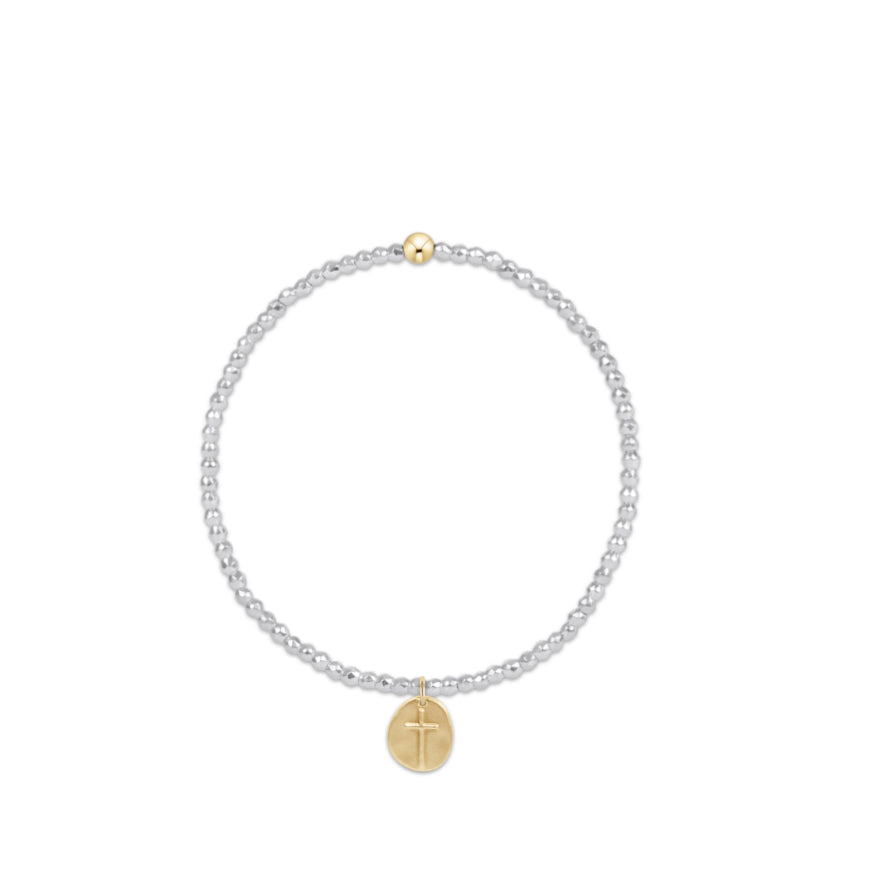 Bright Silver Faceted Hematite 2mm Bead Bracelet - Inspire Small Gold Charm