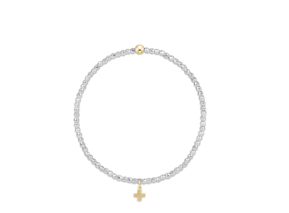 Bright Silver Faceted Hematite 2mm Bead Bracelet - Signature Cross Gold Charm