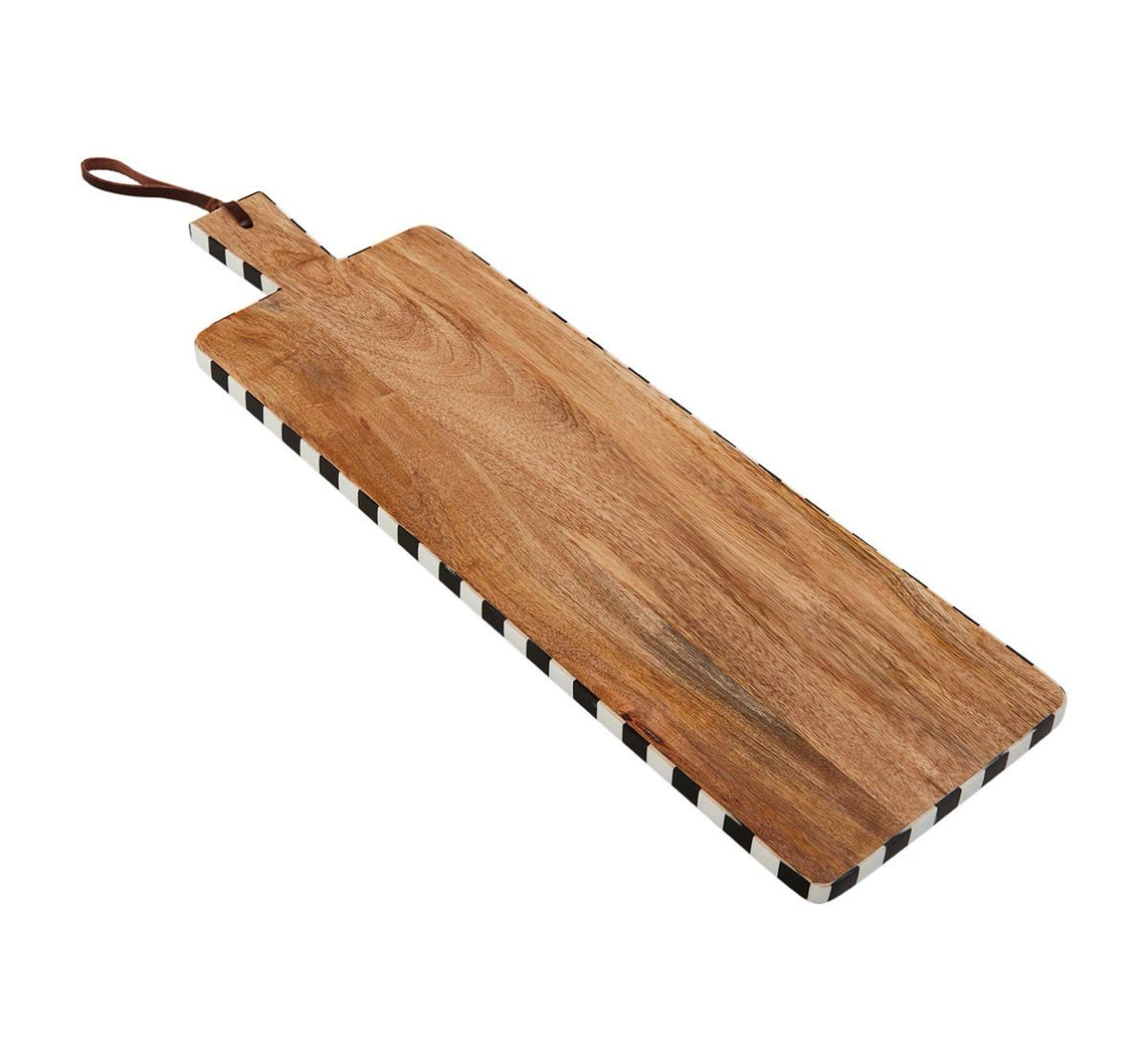 Mango wood paddle board with check resin trim.