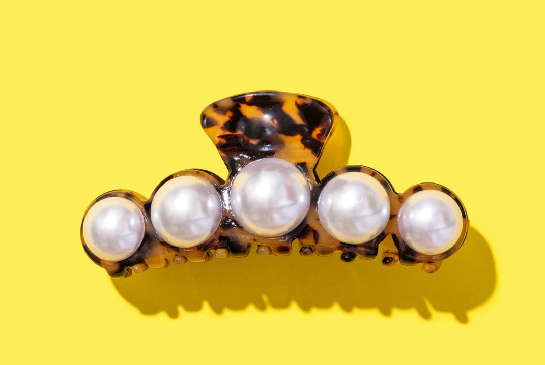 Elevate your outfit with a tortoise + pearl claw clip, in the perfect shade of brown!