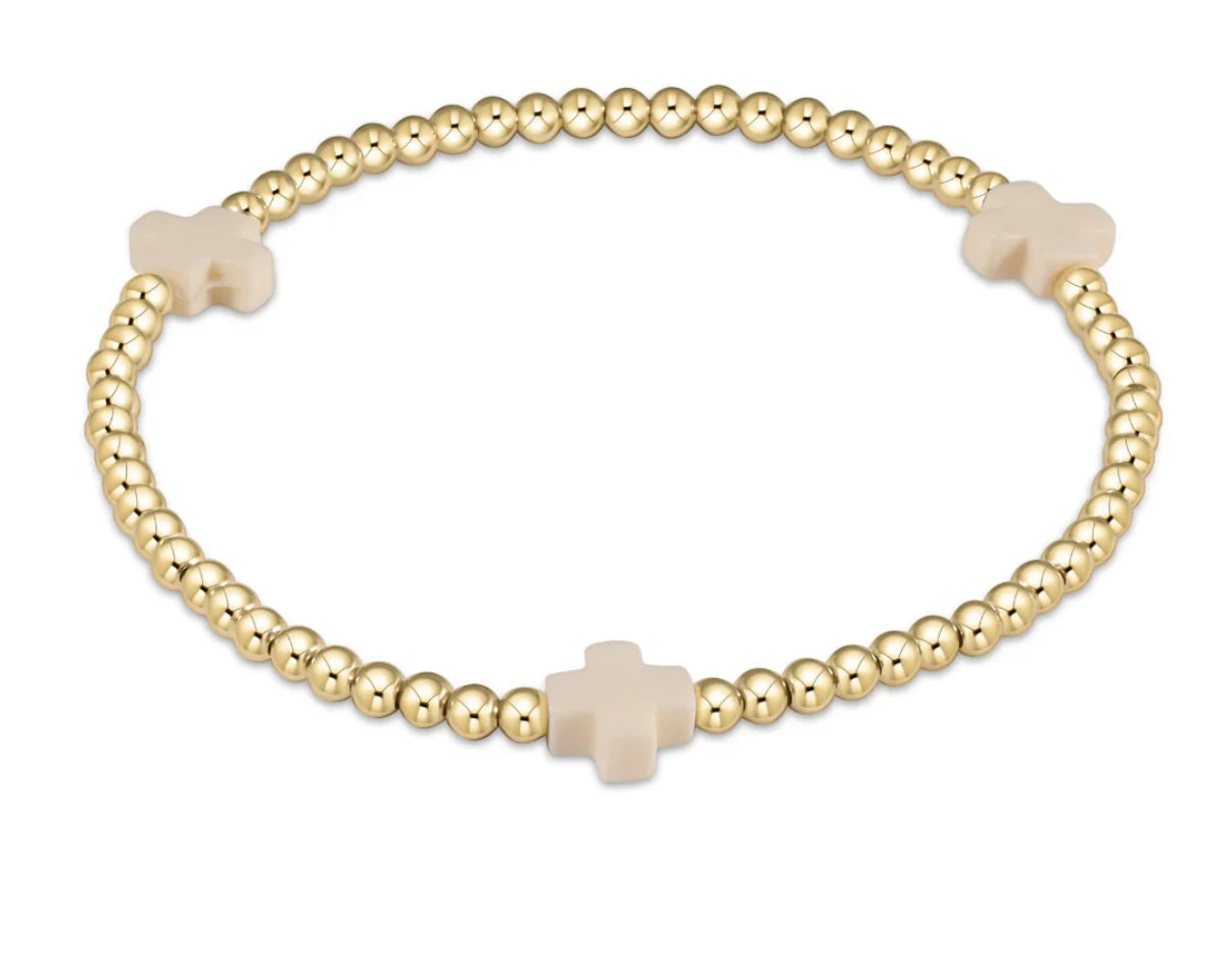 egirl Signature Cross Small Gold Pattern 3mm Bead Bracelet - Off White