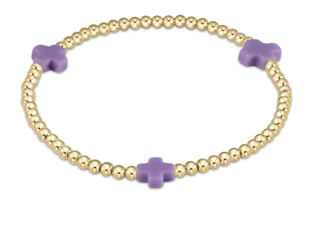 egirl Signature Cross Small Gold Pattern 3mm Bead Bracelet - Purple