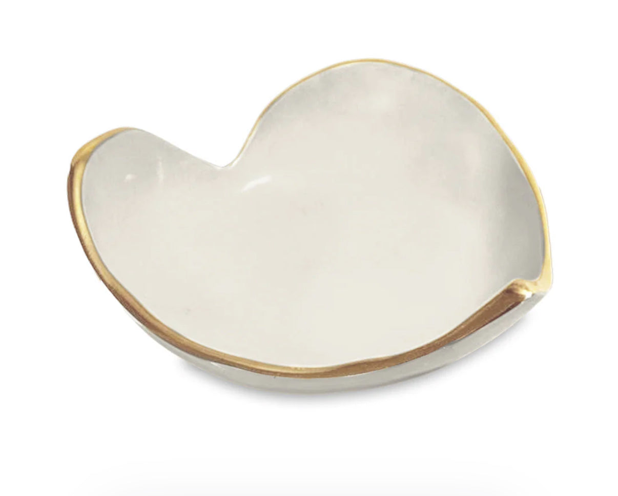 Notable for its artistic form, and brilliant enameled finish, rimmed in gold, the ENCANTO Soho Mini Heart (Cream) is a unique expression of love. Great on the desk or vanity, or use to hold earrings and other small jewelry on your bedside table. Beatriz Ball’s intensely handmade products use eco-friendly and sustainable materials and are crafted by artisans who trace a heritage of metalworking for generations. Made of a top quality, easy-care, aluminum alloy with an enamel finish. This item is for decorative purposes only.