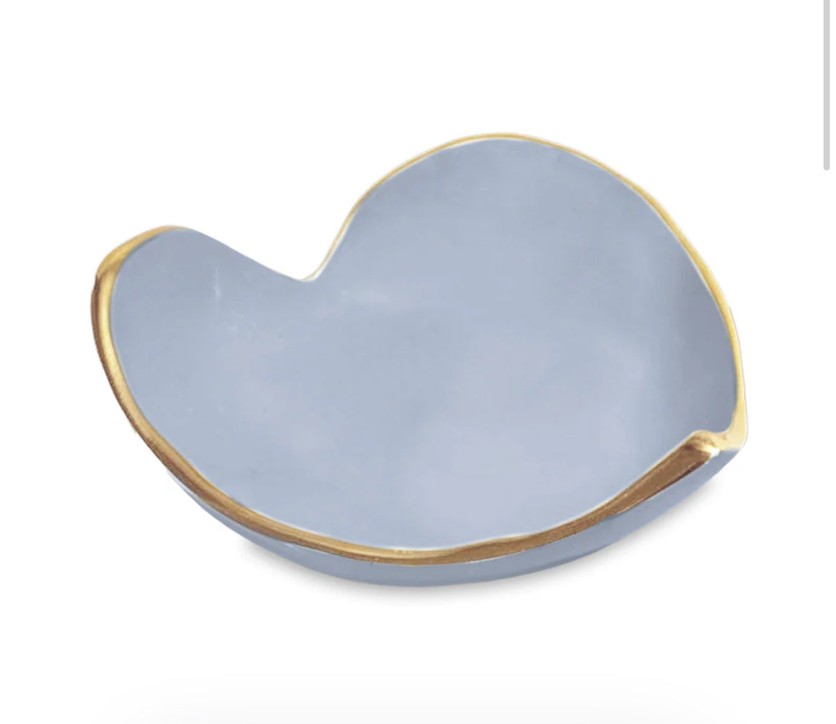 Notable for its artistic form, and brilliant enameled finish, rimmed in gold, the ENCANTO Soho Mini Heart (Periwinkle) is a unique expression of love. Great on the desk or vanity, or use to hold earrings and other small jewelry on your bedside table. Beatriz Ball’s intensely handmade products use eco-friendly and sustainable materials and are crafted by artisans who trace a heritage of metalworking for generations. Made of a top quality, easy-care, aluminum alloy with an enamel finish. This item is for decorative purposes only.