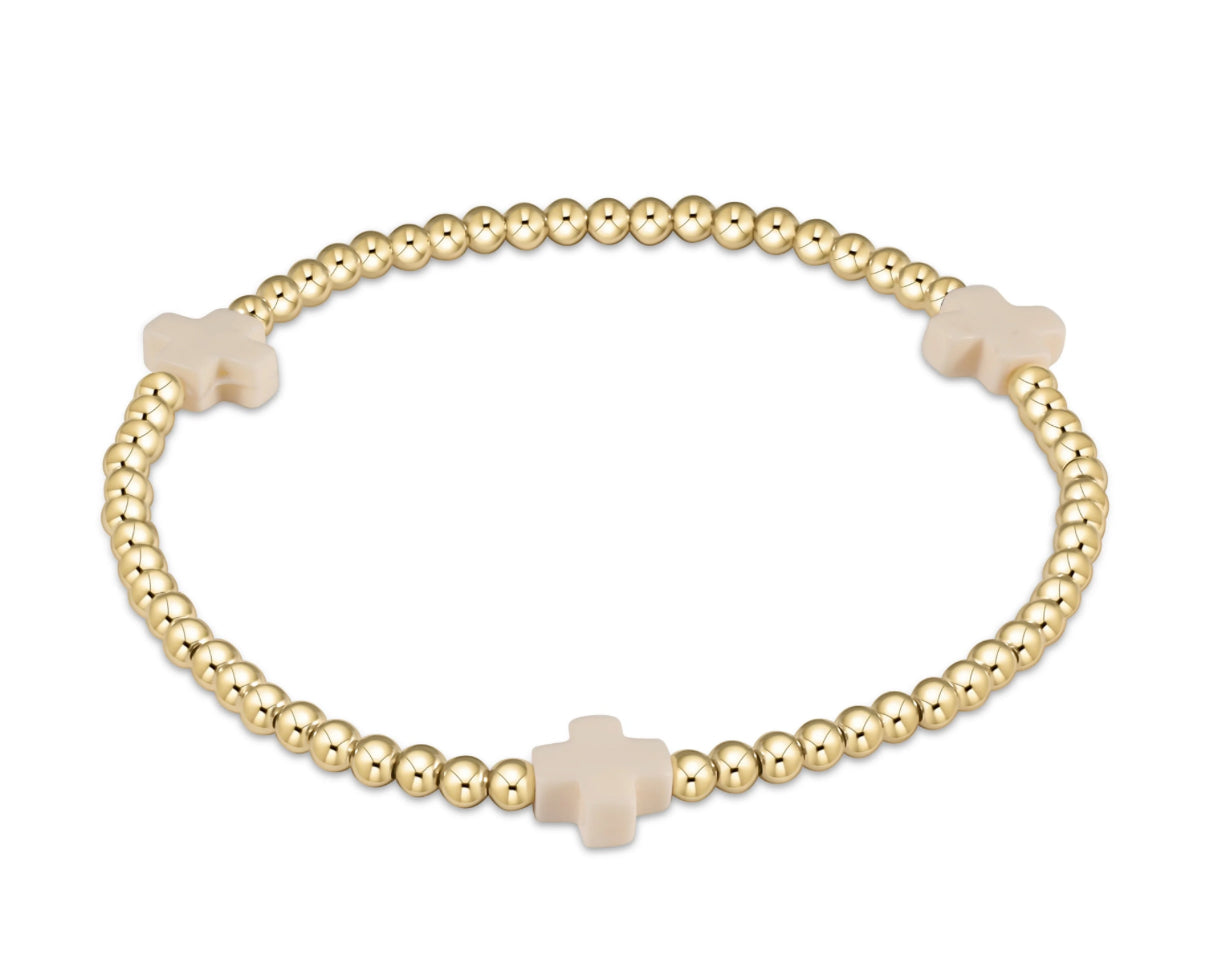 EXTENDS - SIGNATURE CROSS GOLD PATTERN 3MM BEAD BRACELET - OFF-WHITE