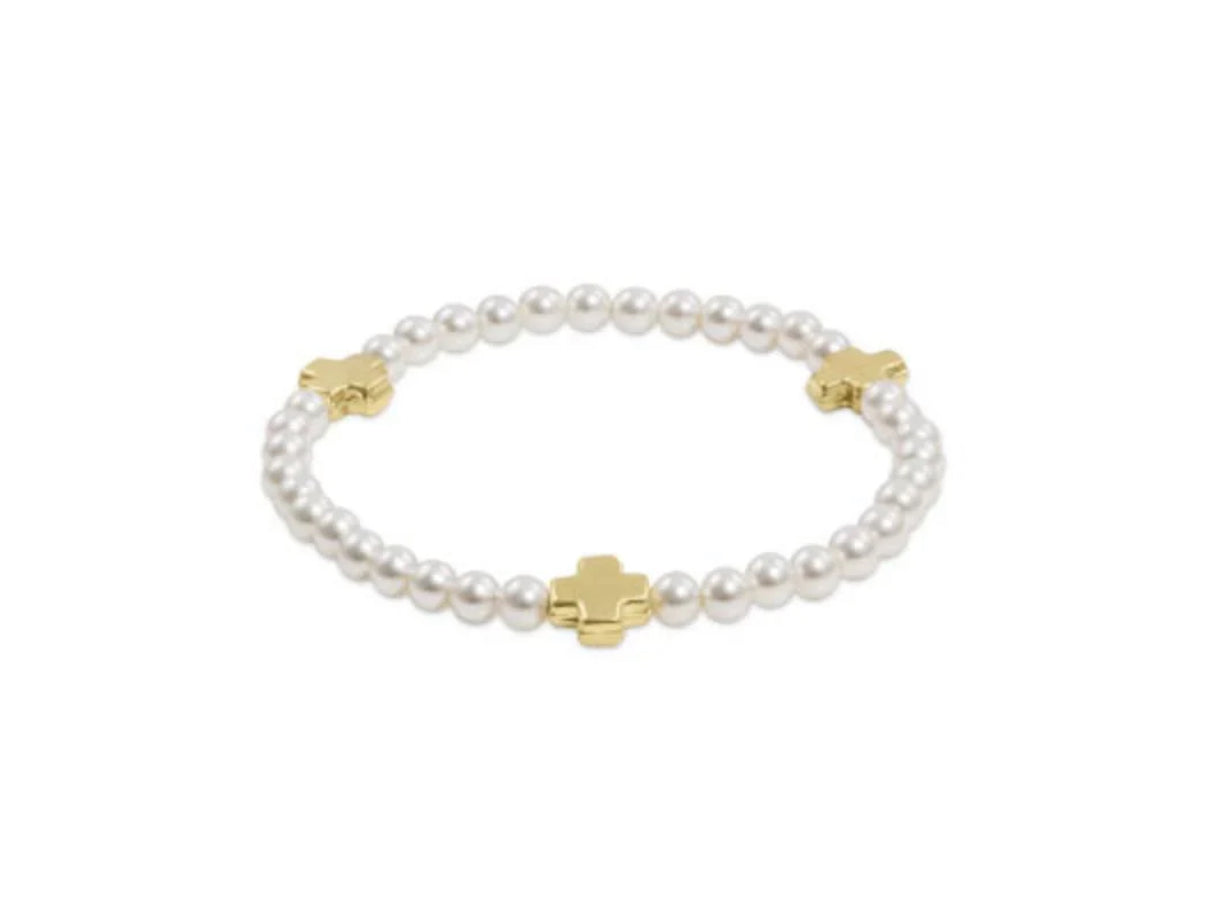 EXTENDS - SIGNATURE CROSS PEARL PATTERN 4MM BEAD BRACELET - GOLD
