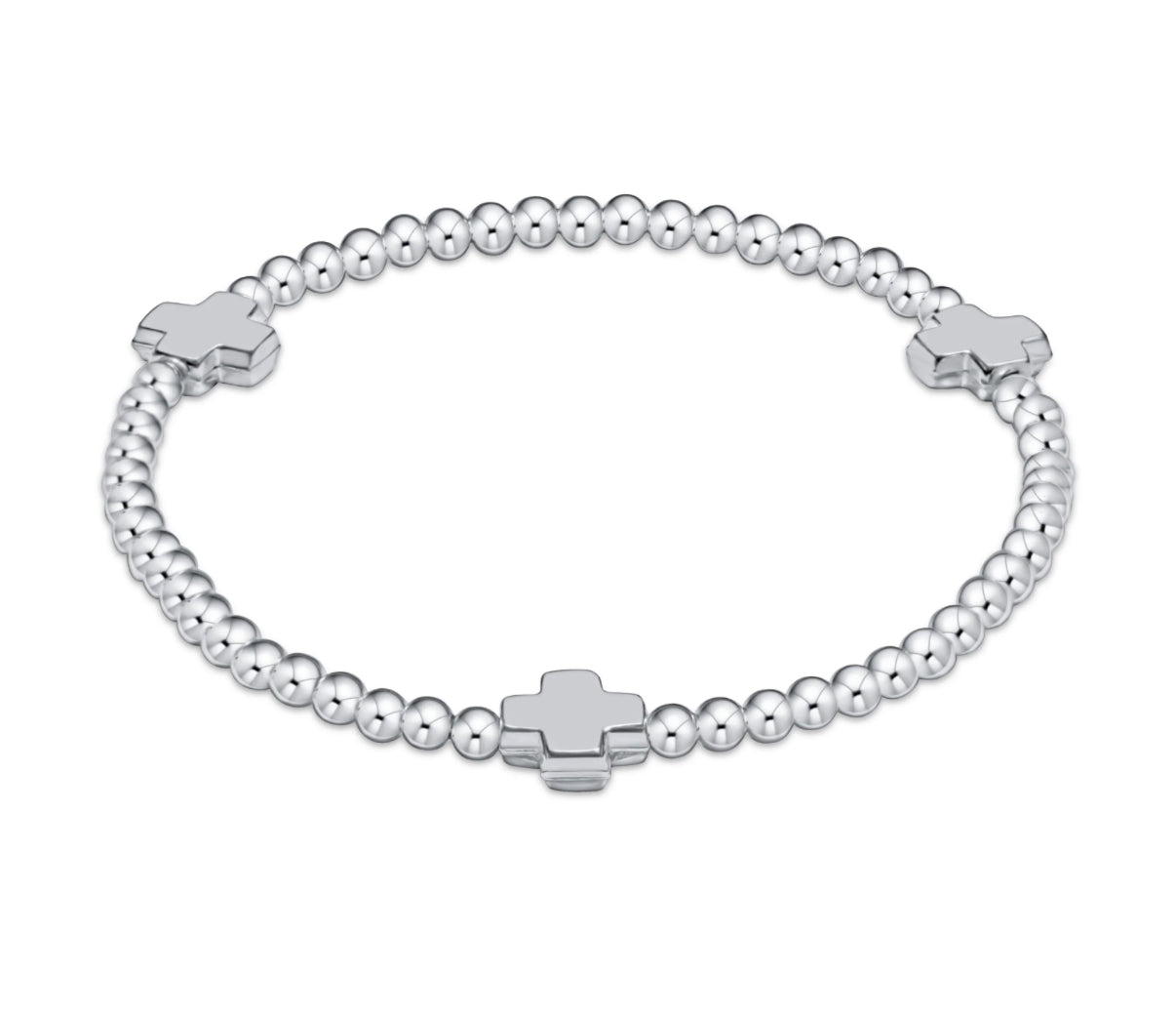 EXTENDS - SIGNATURE CROSS STERLING PATTERN 3MM BEAD BRACELET - STERLING