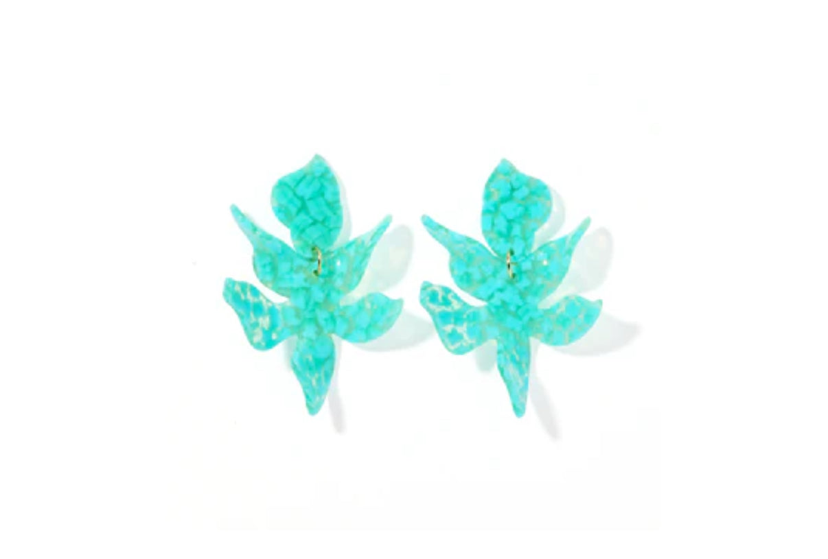 Dive into bold elegance with the Flora Statement Earrings in Aquamarine! These oversized 80mm earrings showcase a stunning green-blue hue with intricate flower-shaped accents, finished with a glossy sheen. They’re the perfect accessory to make a statement while adding a touch of sophistication to any look.