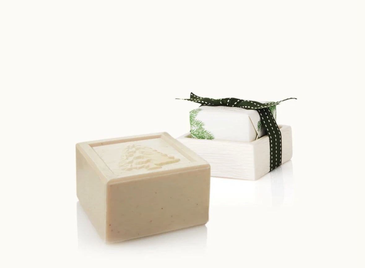 This set of Frasier Fir’s triple-milled bar soap with wood-grain ceramic soap dish makes for an easy gift-giving experience. Moisturize and rejuvenate skin with Frasier Fir.