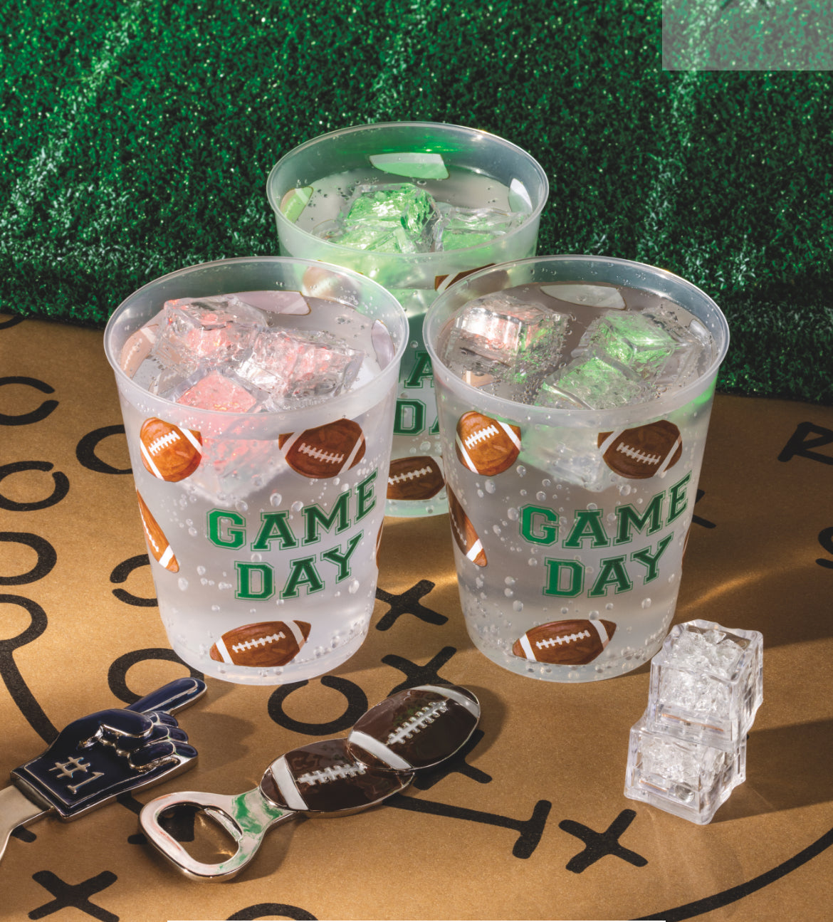 Elevate your tailgate experience with our Game Day Tailgate Party Cup Set. This set includes 10 frosted party cups, each with a generous 16 oz. capacity, perfect for serving your favorite beverages. Crafted from durable plastic, these cups are designed to withstand the excitement of game day festivities. Their frosted finish adds a touch of style, making them ideal for any sports-themed gathering. Conveniently stacked and wrapped in cello, they are easy to transport and store. Whether you're hosting a backyard barbecue or cheering on your team at the stadium, these cups are a must-have for any fan looking to celebrate in style.