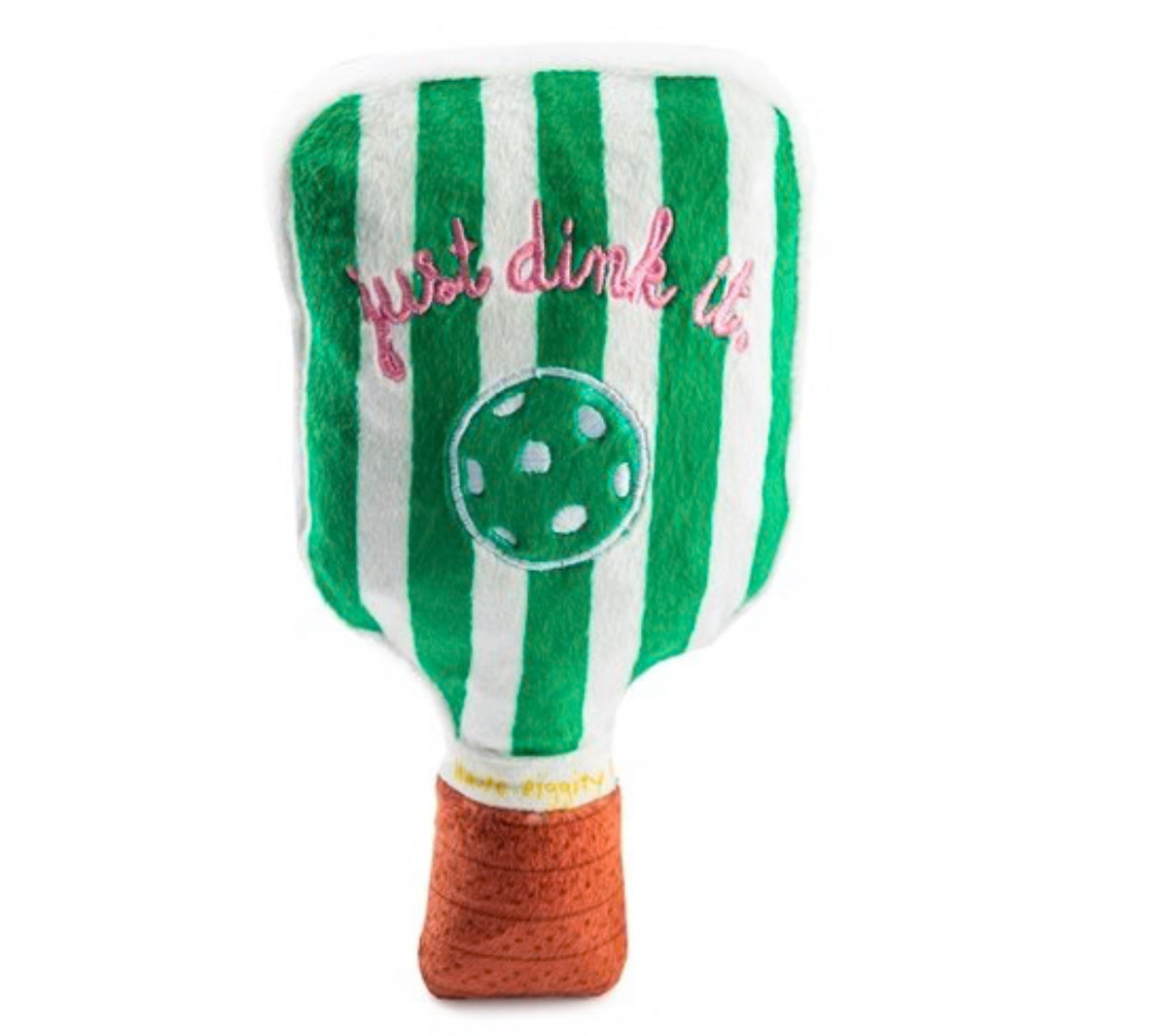 Now your dog can join the pickleball craze as well! Fetch a new level of fun with our Green Striped Pickleball Paddle! This squeaky plush toy brings together sporty stripes and canine joy, ensuring your dog stays active and stylish during playtime.
