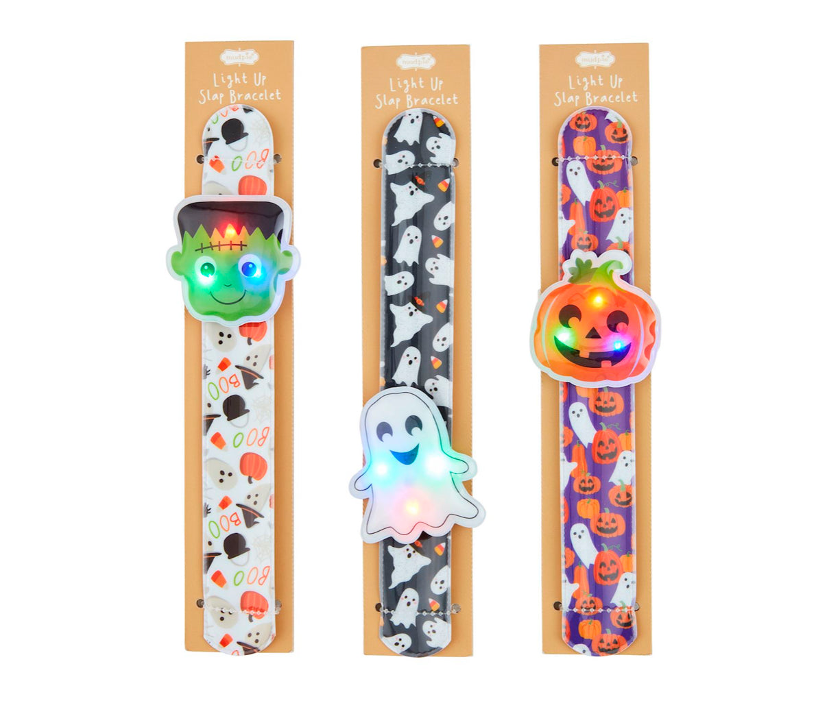 Patterned slap bracelet with LED light-up character. Battery included. Ages 3+.