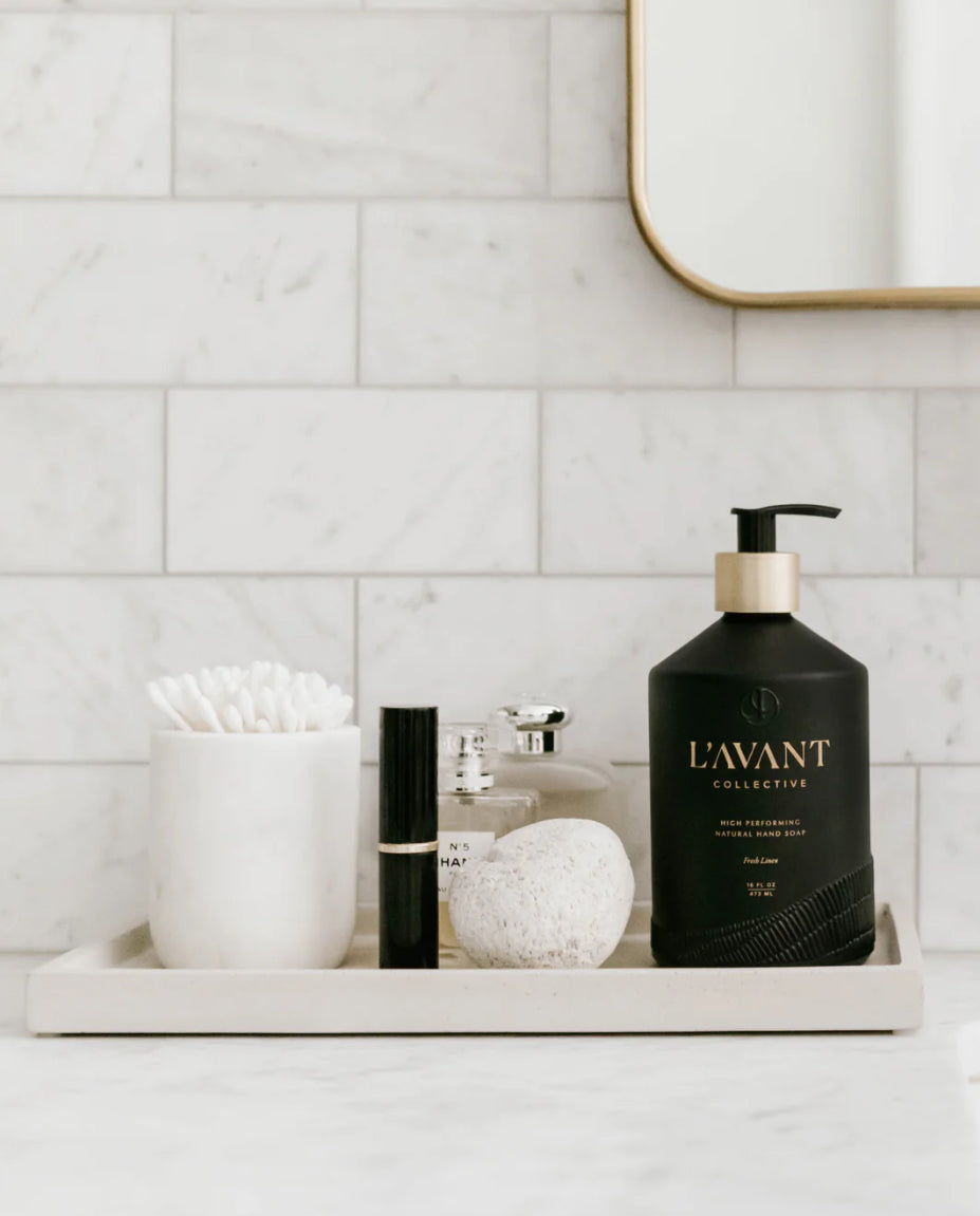 L’AVANT Collective makes washing your hands frequently an eco-luxe experience: luxurious plant-based ingredients in a luxurious, reusable glass bottle. This gentle hand wash transforms into a rich lather, leaving hands feeling clean, soft and scented with our signature, Fresh Linen fragrance.