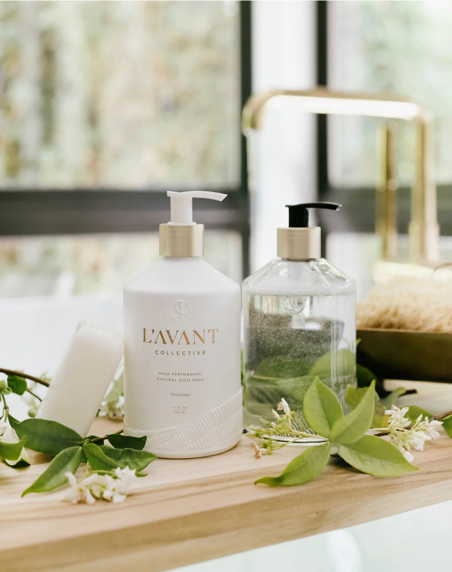 This luxurious, concentrated plant-based dish soap features our delicate Fresh Linen fragrance and comes in a beautiful, refillable matte white glass bottle. Perfect for any countertop, this soap provides a premium cleaning experience with results that surpass expectations.