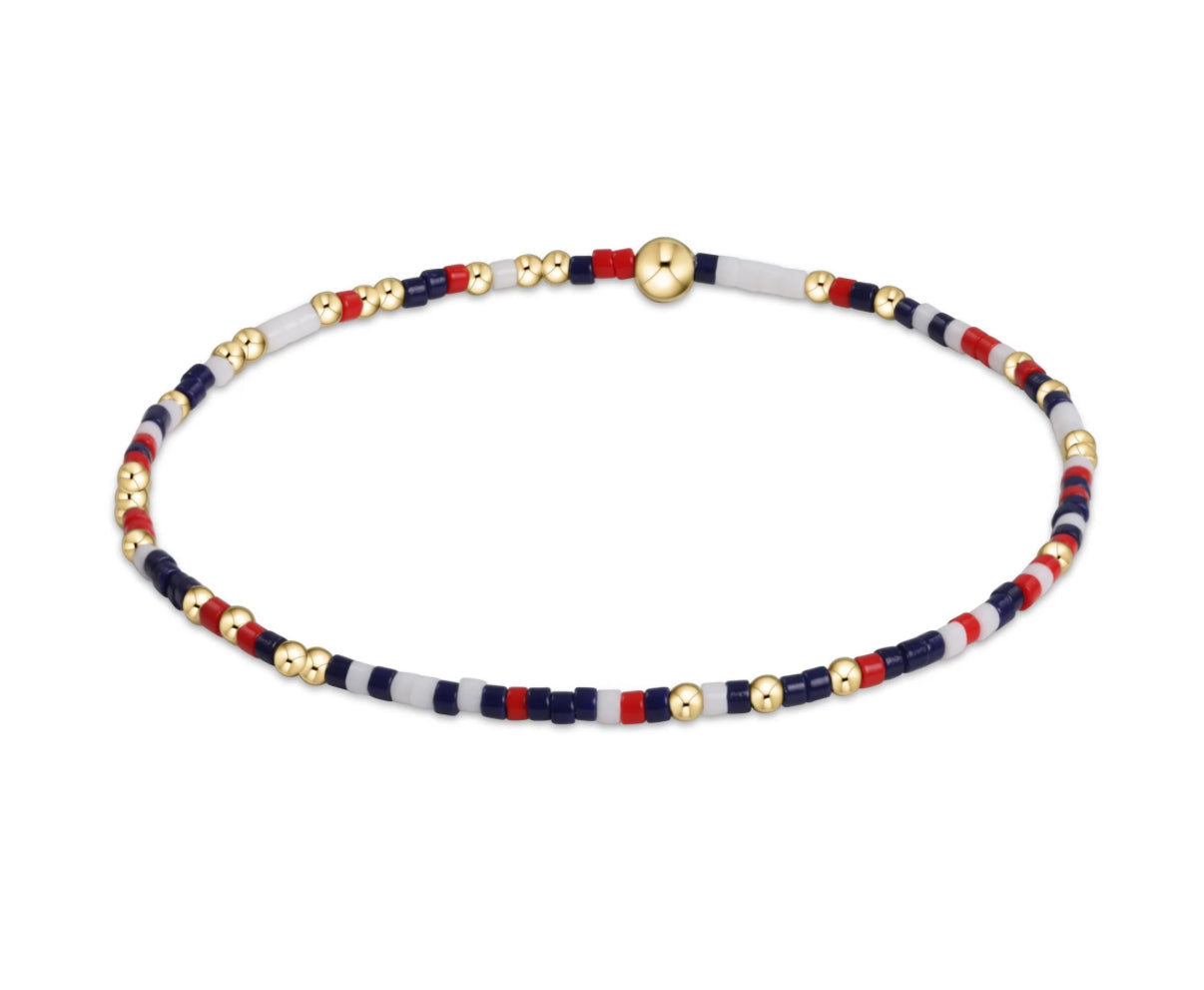 - Made with 2mm, 14kt gold-filled beads and signature crosses in red, off-white, and navy