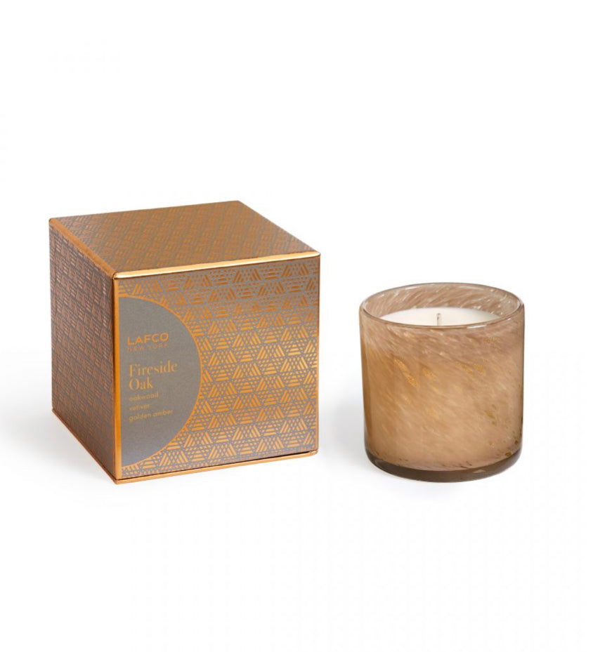 The comforting aroma of a fireside gathering is created by blending aromatic oakwood and smoked vetiver with rich golden amber and creamy sandalwood. A warm, inviting scent that creates a cozy embrace.
