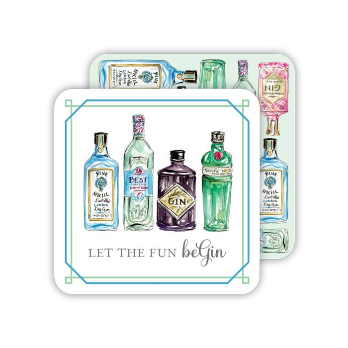 Let The Fun Begin Handpainted Gin Bottles Paper Coaster
