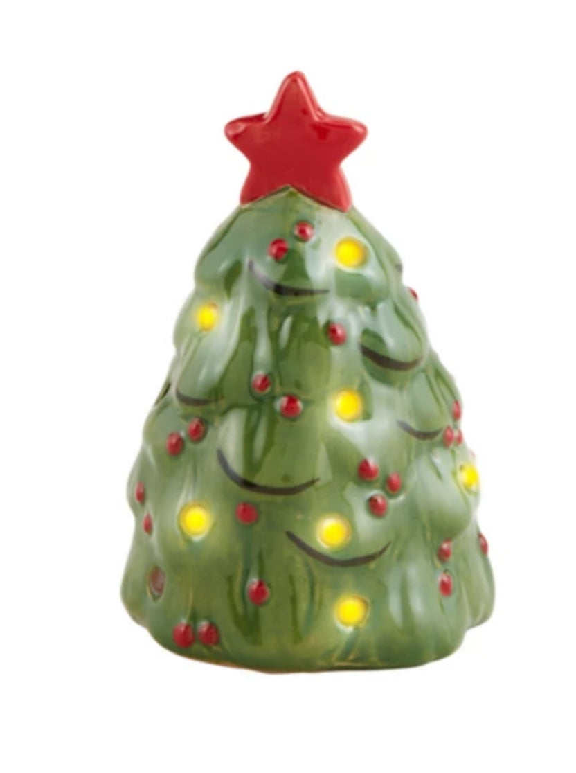 The Light-Up Tree Sitter is a beautifully crafted ceramic ornament that adds a touch of enchantment to any space. Designed with intricate pierced holes, this tree sitter allows the soft glow of LED light to pass through, creating a mesmerizing display of light and shadows. The included battery ensures that you can enjoy the magical ambiance right out of the box. Made from high-quality stoneware, this tree sitter is built to last and withstand the test of time. With its compact size of 4 1/2" x 2 3/4" diameter, it can easily be placed on a tabletop, mantel, or even nestled among the branches of your Christmas tree. Illuminate your home with the Light-Up Tree Sitter and let its radiant charm captivate all who behold it.