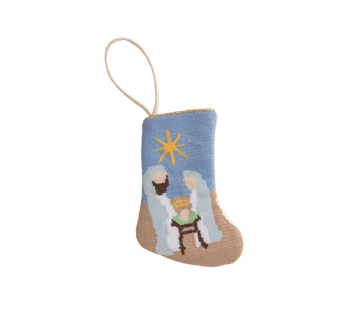 Celebrate the holiday season with this charming Needlepoint Stocking, a delightful addition to your festive decor. This mini stocking features intricate needlepoint craftsmanship, showcasing a beautiful nativity scene that captures the essence of Christmas. Measuring 4 1/2" x 3", it's the perfect size for small gifts, treats, or as a decorative accent on your tree or mantel. Made from high-quality cotton, it offers a soft and durable texture, ensuring it remains a cherished part of your holiday traditions for years to come. The canvas backing adds a touch of elegance, while the convenient loop allows for easy hanging. Embrace the spirit of the season with this exquisite needlepoint stocking, a timeless piece that brings warmth and joy to your home.