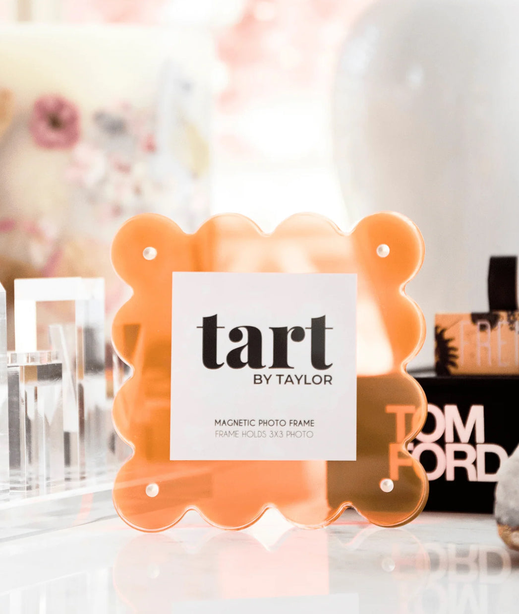 Show off your memories in a unique way with our Mini Acrylic Picture Frame! This acrylic scalloped frame adds a playful touch to your photos, making them stand out in any room. Great for nightstands, and desks plus they make for the perfect gift!