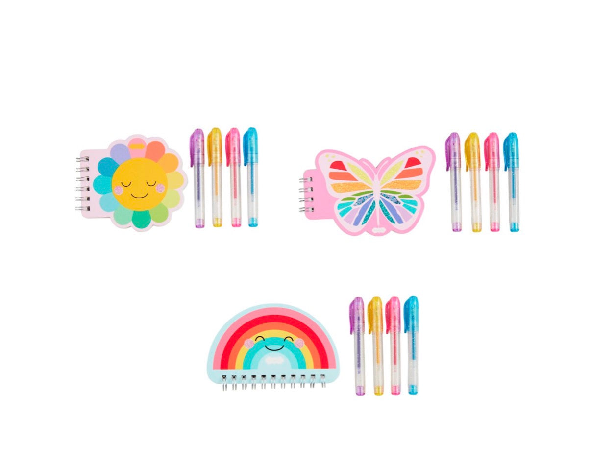 6-piece set. Four mini gel pens and figural spiral notebook come in vinyl zipper pouch.