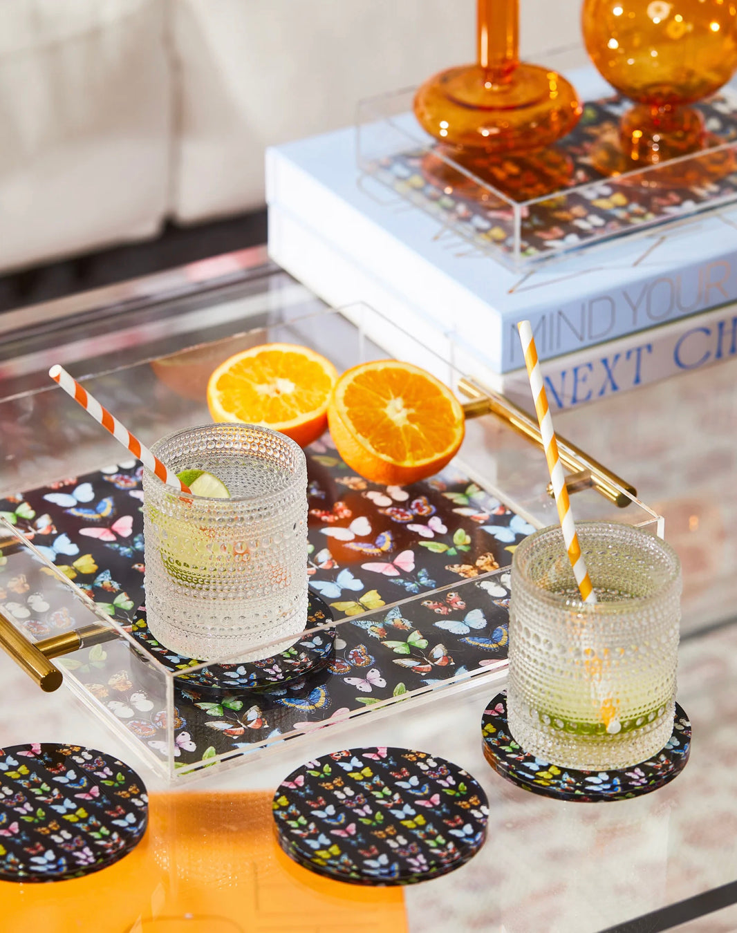 Add a splash of color and personality to your next get-together with these Monarch Coasters! These fun and funky handmade acrylic coasters feature beautiful monarch butterflies, and are sure to liven up any beverage - from coffee to cocktails! So get your drinks in flight with Monarch Coasters!