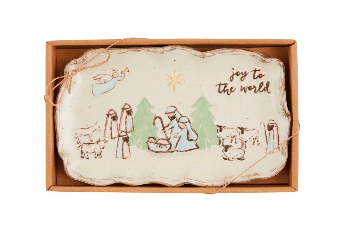 The Nativity Plate is a beautifully crafted piece made from hand-painted stoneware. Measuring 6" x 9 3/4", this plate showcases a stunning depiction of the nativity scene. The intricate details and vibrant colors bring the scene to life, making it a perfect addition to your holiday decor. Each plate is carefully painted by skilled artisans, ensuring a unique and high-quality product. Whether displayed on a mantel, used as a decorative centerpiece, or given as a thoughtful gift, the Nativity Plate is sure to evoke a sense of joy and wonder during the holiday season.