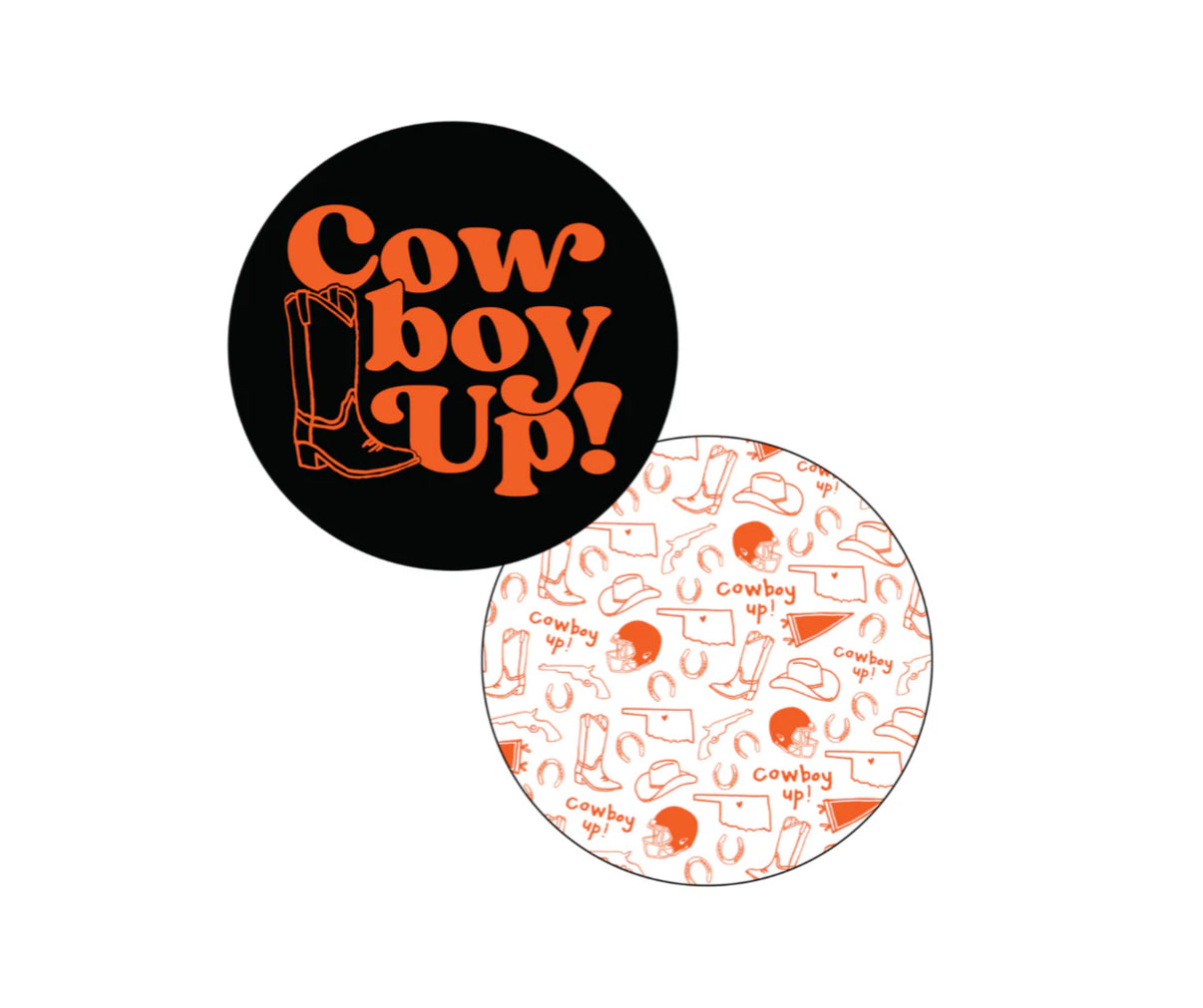 - Vibrant Design: Features the Oklahoma inspired icons and "Cowboy Up!"