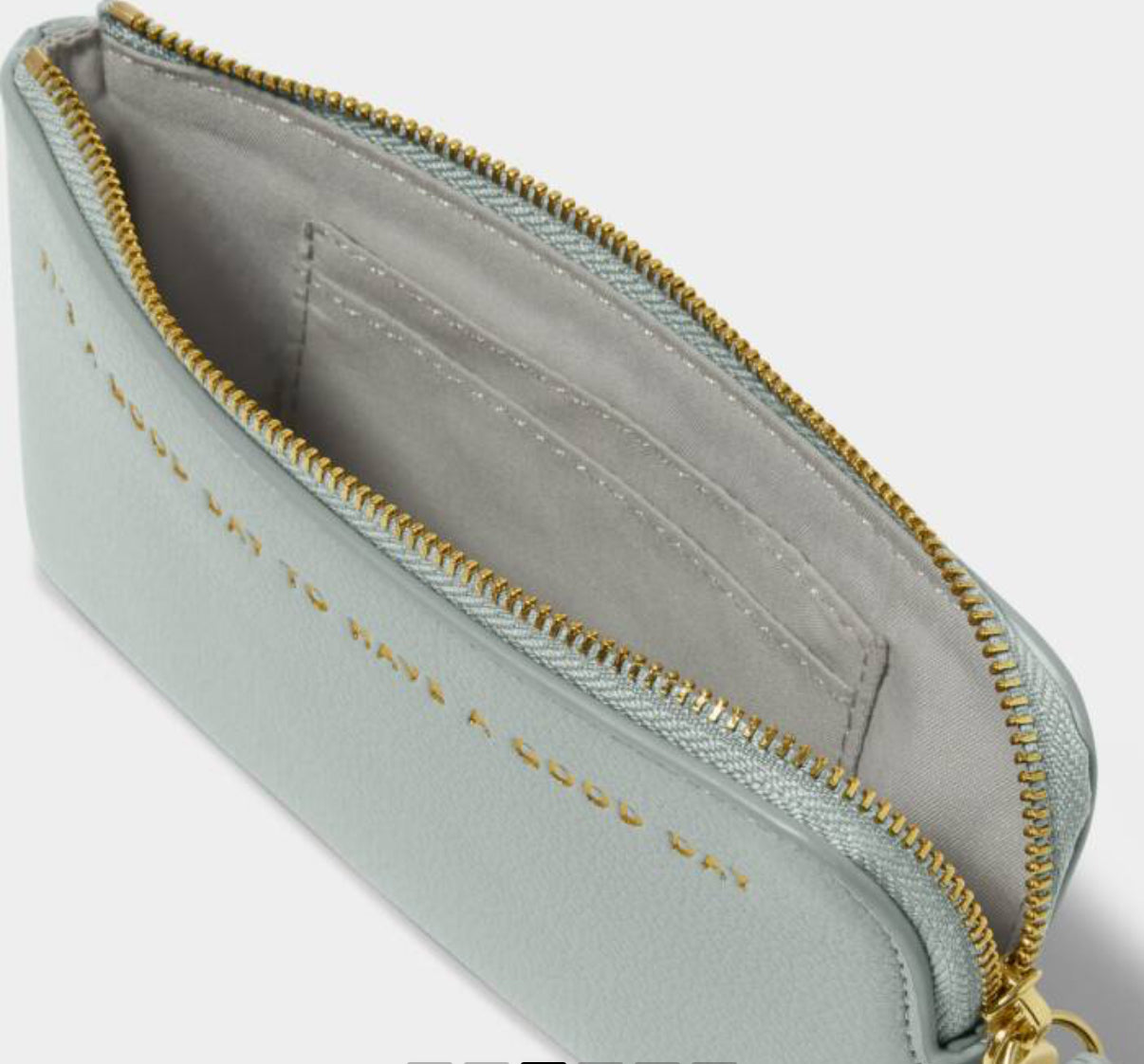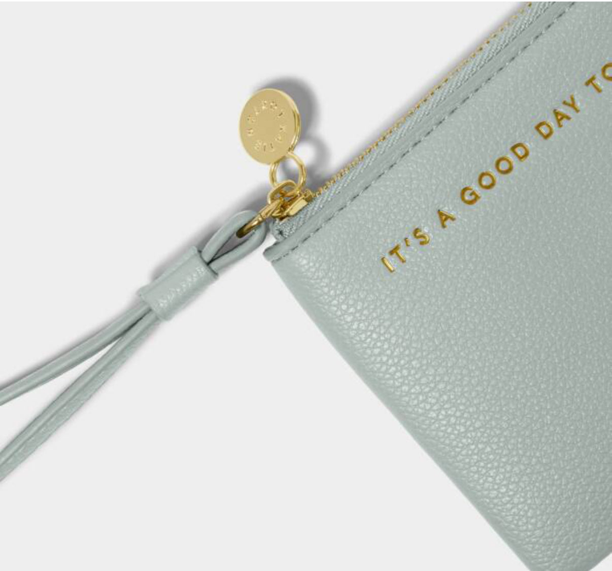 Discover our radiant Positivity Pouch in Duck Egg Blue, designed to infuse a daily dose of optimism into your daily routine. Carefully designed with soft vegan leather and adorned with our signature gold-tone hardware, effortlessly elevating any ensemble with a touch of luxury. The attached wristlet strap provides hands-free convenience, while the zip closure ensures effortless organization of essentials. Beneath the zipper, a heartfelt sentiment, 'It's A Good Day To Have A Good Day' awaits to uplift and inspire.