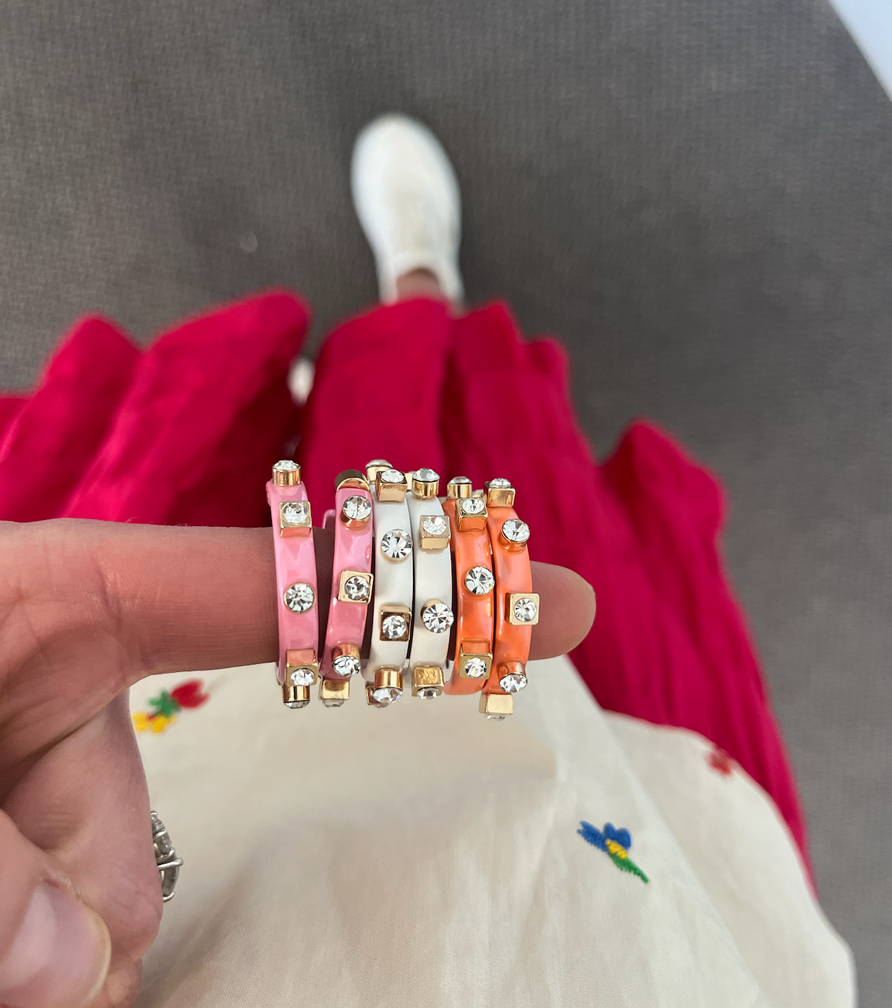Rose metal hoop with crystal jewels. Offered in petite 1" size, nickel free, led free. Lightweight hoop.