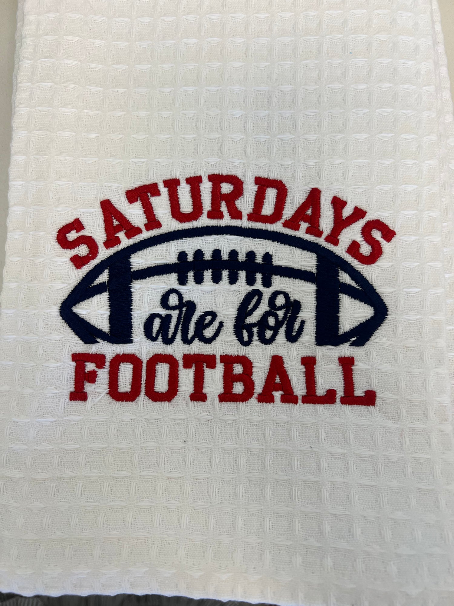Waffle Tea Towel with "Saturdays are for Football" Embroidered