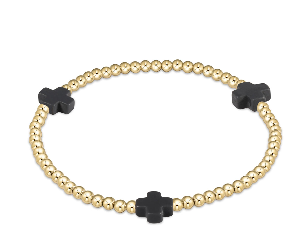 Signature Cross Gold 3mm Bead Bracelet- Onyx