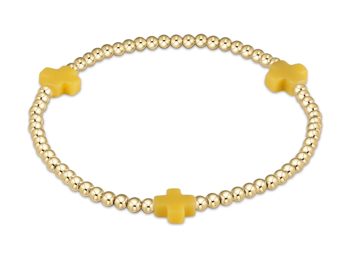 Signature Cross Gold 3mm Bead Bracelet- Canary