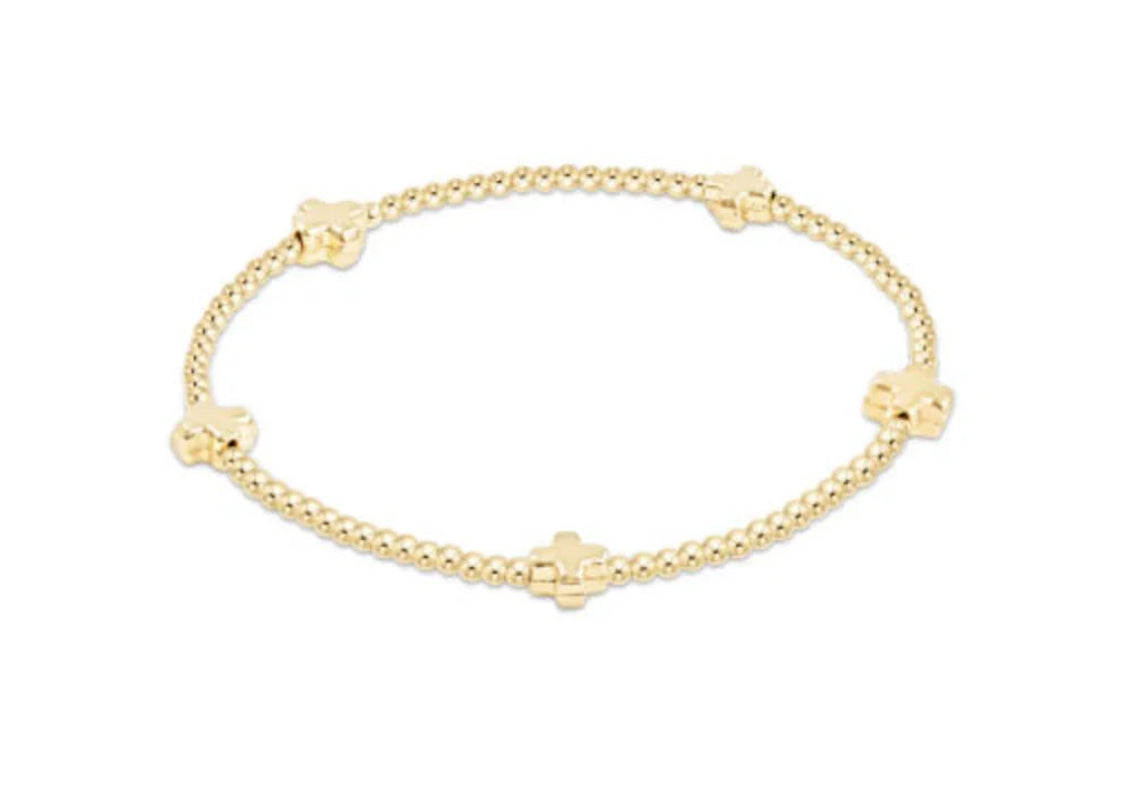 SIGNATURE CROSS GOLD PATTERN 2MM BEAD BRACELET - GOLD