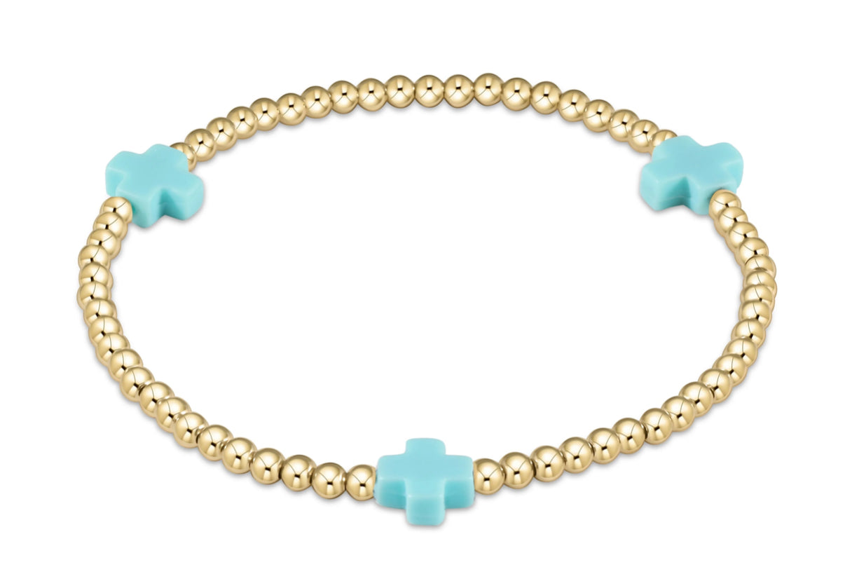Signature Cross Gold Pattern 3mm Bead Bracelet- Turquoise