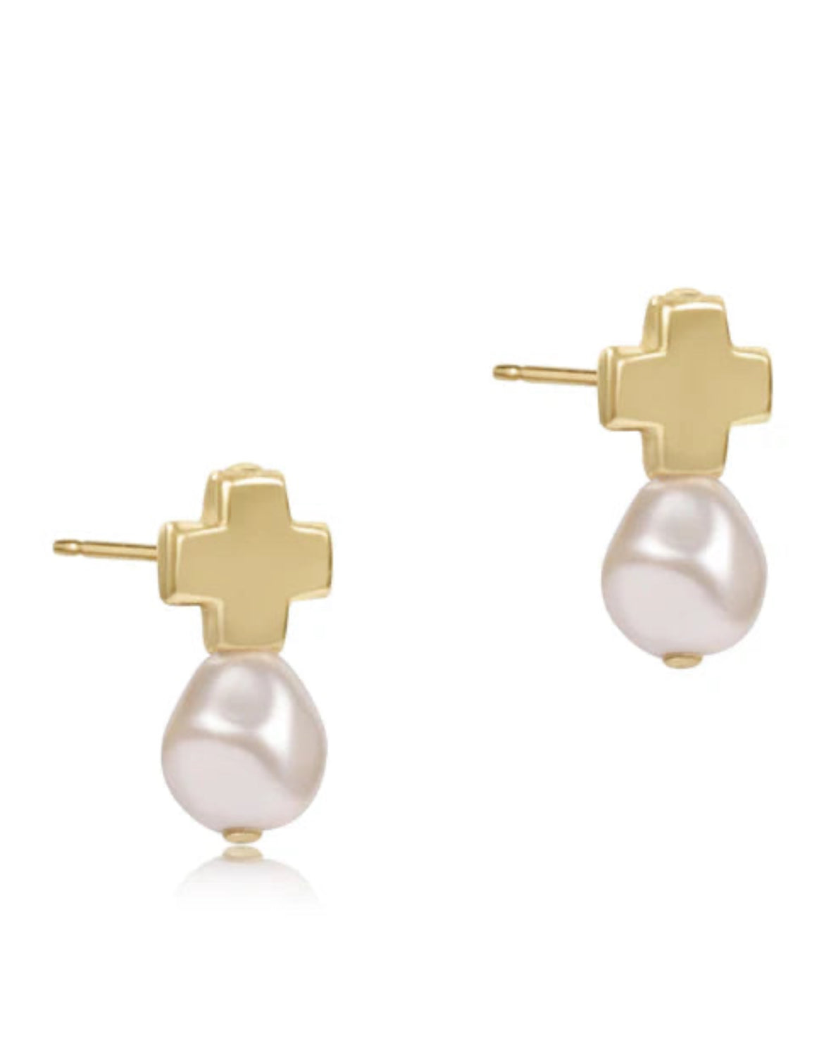 Elevate your style with the Enewton Signature Cross Gold Stud Earring Pearl. Made by Enewton, these earrings feature a stunning gold cross design with a delicate pearl accent. Radiate sophistication and elegance with this timeless piece.