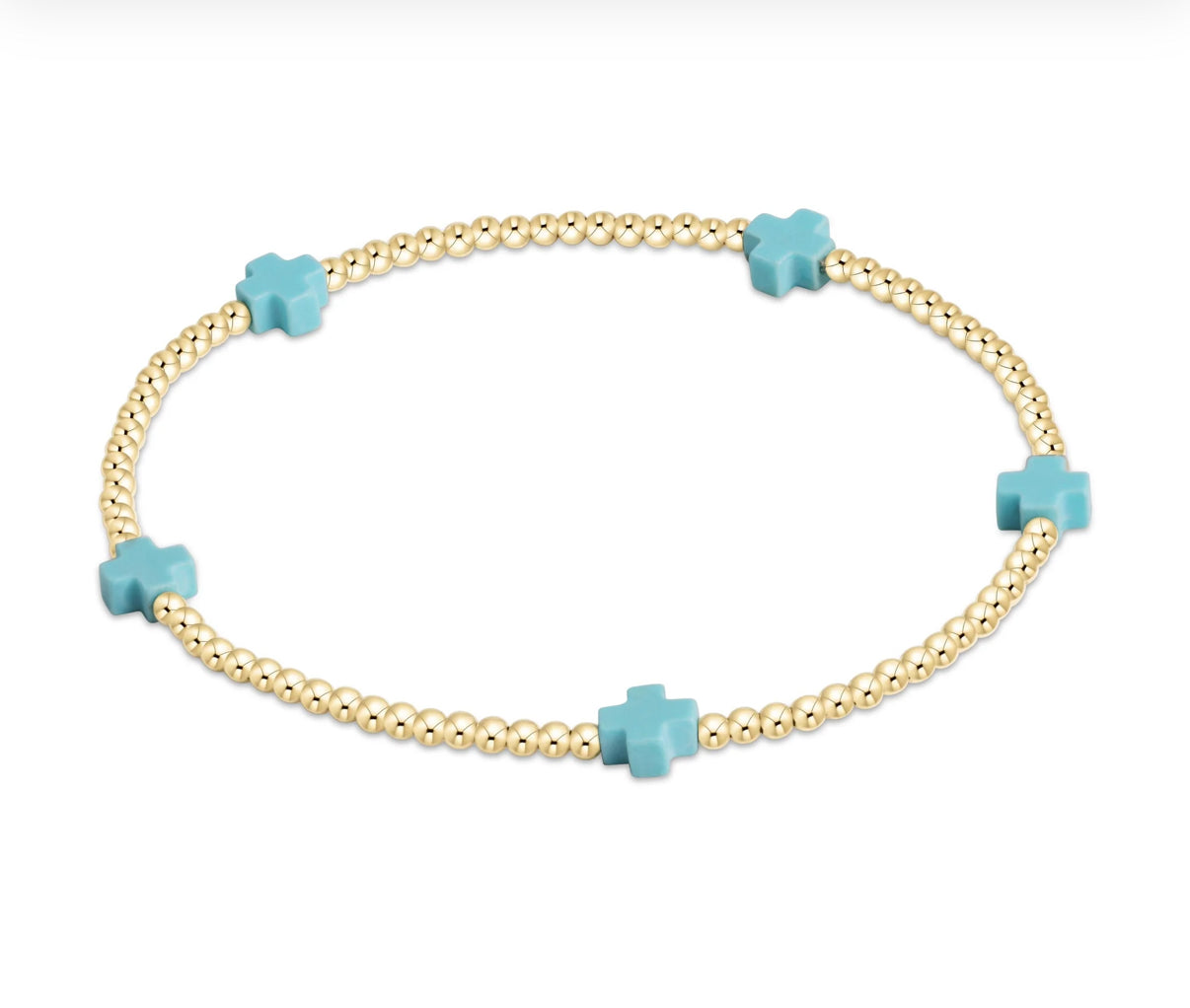 Signature Cross Small Gold Pattern 2mm Bead Bracelet- Mint