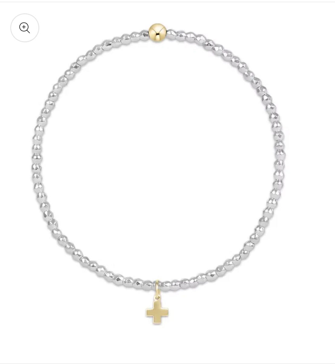Silver Faceted Hematite 2mm Bead Bracelet - Signature Cross Gold Charm