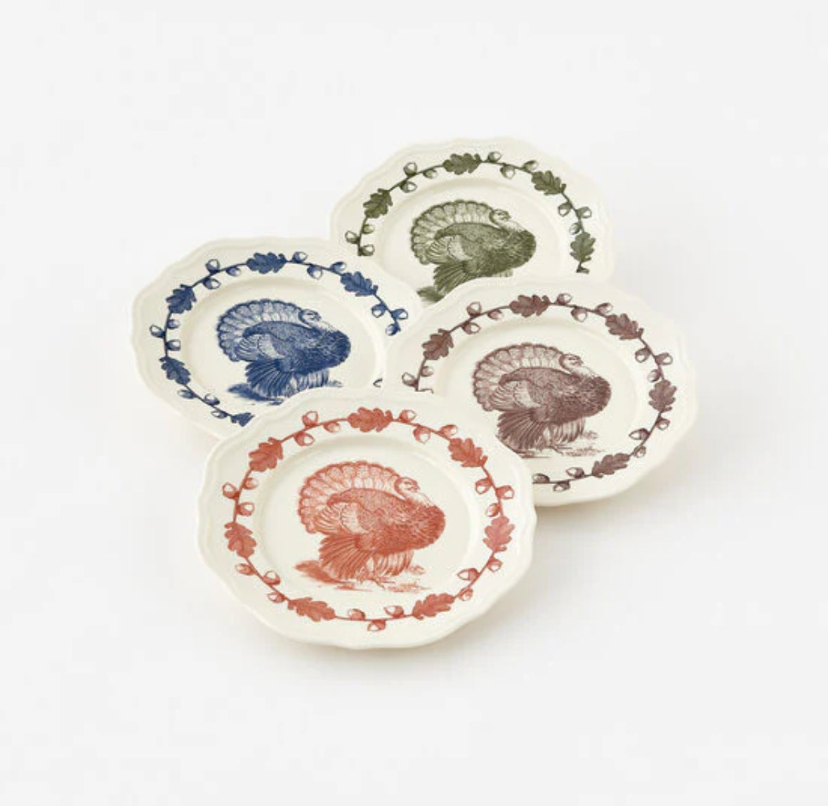 Gobble up meals with this Turkey Scalloped Plate, perfect for Thanksgiving or anytime dining. Durable melamine construction ensures these playful 10" plates can withstand even the heartiest of feasts. Comes in a set of 4 assorted designs.