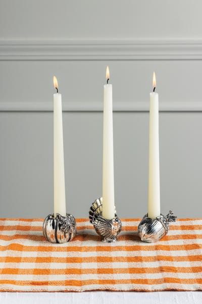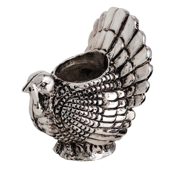 Enhance your holiday decor with this charming Turkey Taper Holder, crafted from durable cast aluminum. Measuring 3 1/2" x 2 1/2", this figural taper holder adds a touch of elegance and whimsy to any table setting. Its intricate design captures the essence of the season, making it a perfect centerpiece for Thanksgiving gatherings or autumn celebrations. The sturdy metal construction ensures stability and longevity, while its compact size allows for versatile placement. Ideal for holding standard taper candles, this holder is a delightful addition to your festive home decor collection.