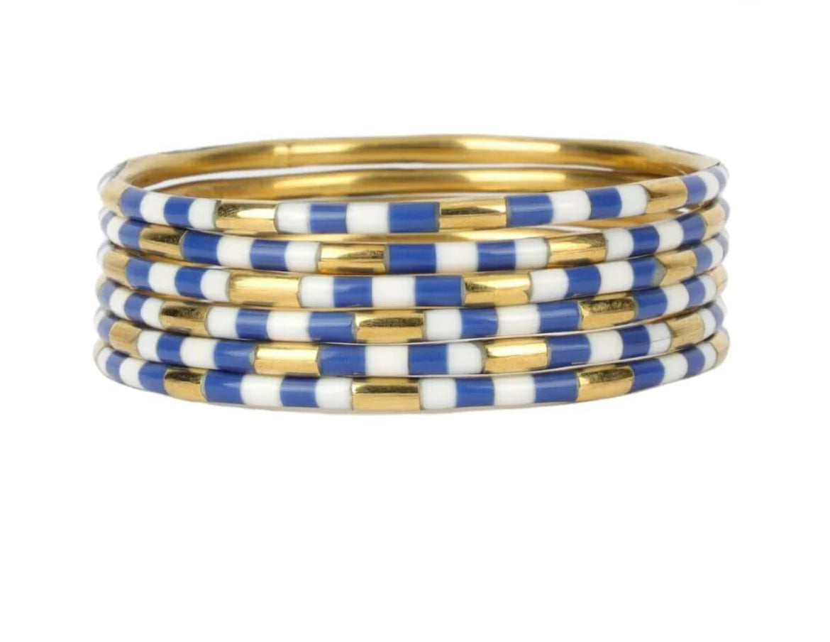 The allure of enamel is captured in our delicate set of six Veda bangle bracelets set. Available in chocolate, black, turquoise, coral, ivory, and caribe. Combined with white and gold enamel for a modern must-have bracelet set, or stack them with an AWB bracelet set of your choice. Vedas are ancient Hindu texts containing wisdom delivered to priests via hymns, philosophy, and other rituals.