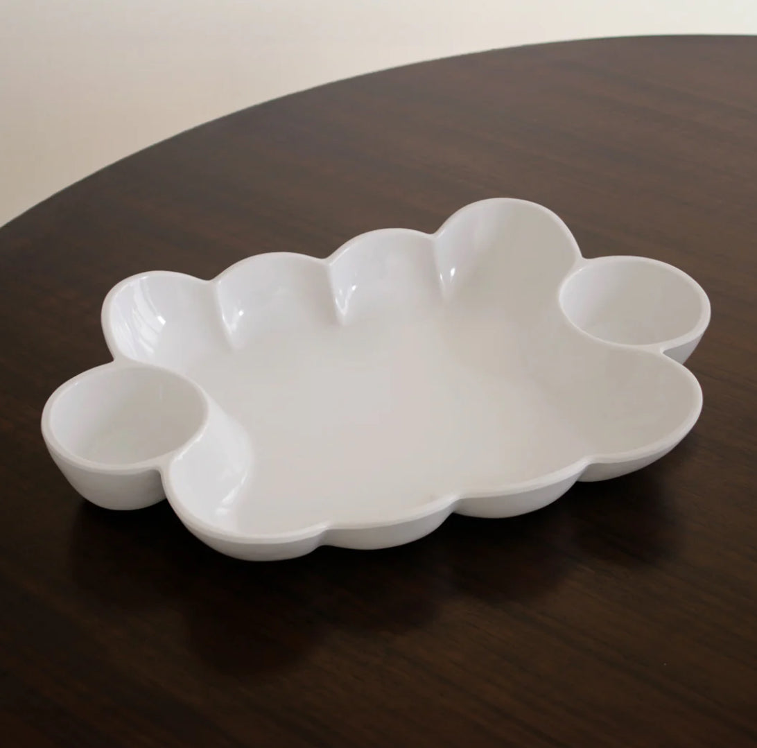 Luxury melamine that multiplies the serving options. When just one dip won't do, use the white VIDA Havana Double Dip (White) to bring food together. With two built-in dip bowls flanking a rectangular serving area, the versatile piece makes a great gift for anyone who loves to entertain. Great for passing around chips and dip, the piece also makes a stylish statement on the dining or patio table. Perfectly suited for indoor and outdoor entertainment, the VIDA Havana Double Dip (White) is designed for everyday enjoyment. Pair with other Havana melamine pieces for a coordinated serving set. The multipurpose piece works beautifully with items from Beatriz Ballās signature metal line, too. Having the substance, weight and appearance of ceramics, this white melamine serving piece is as beautiful as it is versatile. Dishwasher safe (top rack), heavy weight, food safe, BPA and PABA free.
